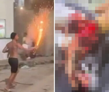 【閲覧注意】海外の花火を手に持ってイキってたDQN、ガチで終わる…(動画あり)
