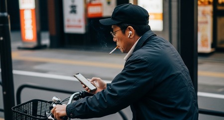 【自転車】咥え煙草に耳にイヤホン、スマホ片手にチャリ運転っていう冗談みたいな自爆テロ中年が目の前を通過した